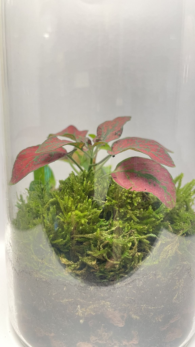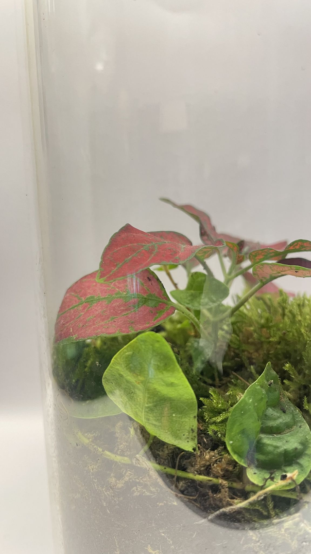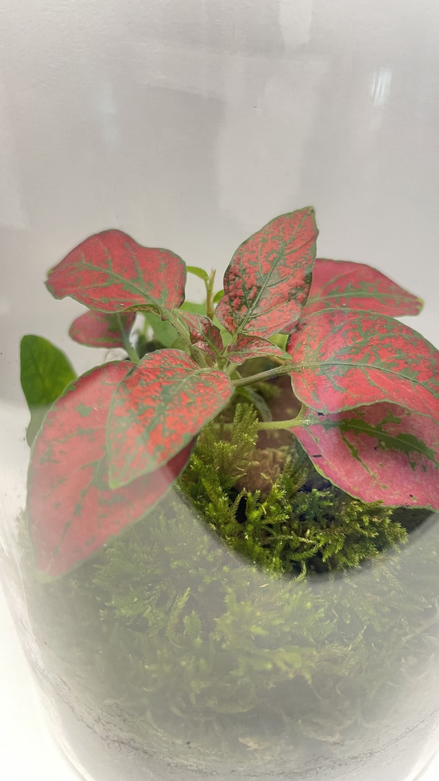 - une fittonia rouge, aux nervures éclatantes et contrastées.
